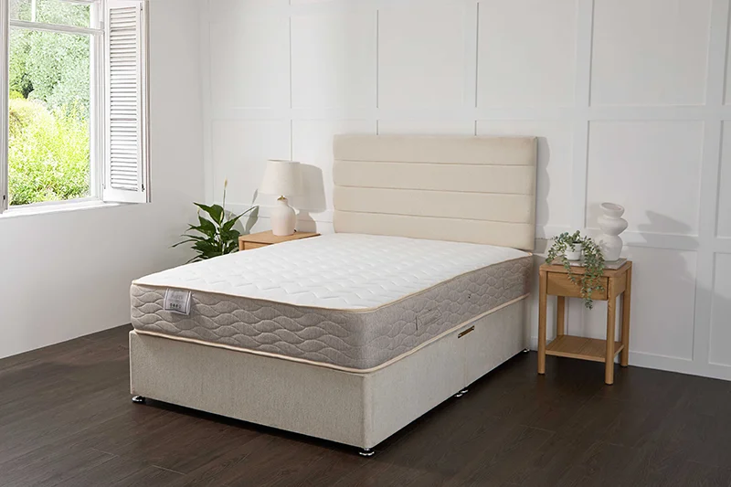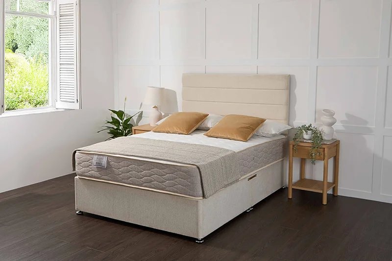 The open coil sprung mattress is built to offer consistent, all-over support, helping to distribute weight evenly and promote healthy spinal alignment. Working with the strong divan base underneath, it creates a stable, reassuring feel that’s ideal for busy homes, guest rooms or a main bedroom that’s used every night.